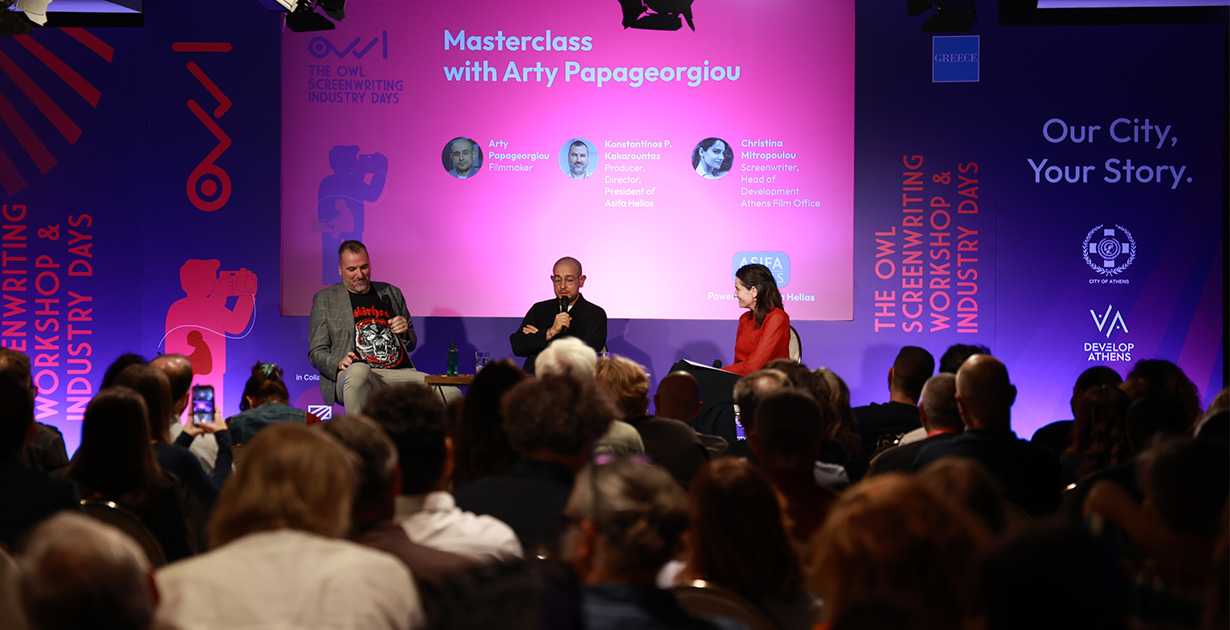 The masterclass took place as part of the Industry Days of OWL, organized by the Athens Film Office of the City of Athens in collaboration with EKOME, on Tuesday, October 7, 2025, from 19:00 to 20:30 at the Aigli Ballroom.